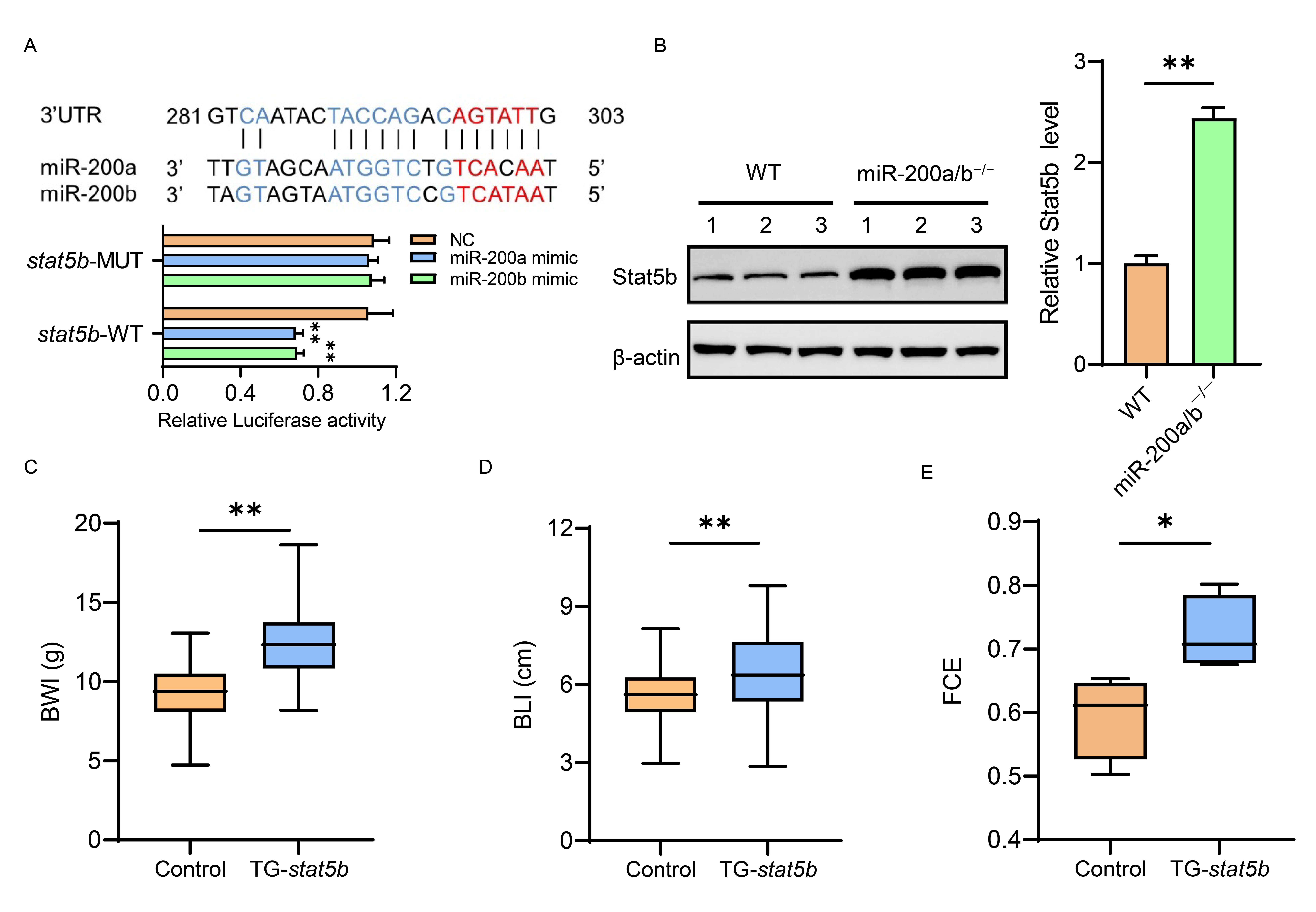 3 miR-200a/200b顺利获得靶作用stat5b调控黄颡鱼的生长与饲料转化率